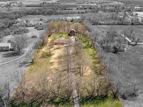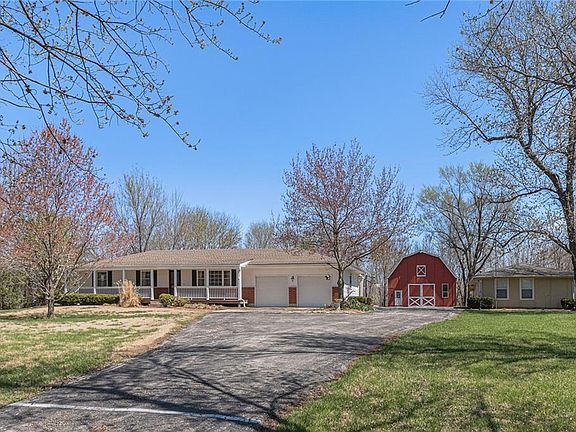 Pull up the tree lined drive to your amazing home nestled on 4 acres. Enjoy one level living in the ranch style home with a sprawling front porch. Featuring 3 bedrooms and 2 bathrooms, and over 2,000sqft of finished living space. The guest house has an additional 1 bedroom and 1 bathroom with 880sqft of finished living space. In total; you have 4 bedrooms and 3 bathrooms with approx 3,000sqft of finished living space on the whole property. The main home has a formal living space, eat-in kitchen that overlooks the sunken family room. Surrounded by windows, enjoy the views while nestled around the cozy fireplace. Stainless steel appliances in the kitchen. All three bedrooms are on the main level. Washer & dryer hookups in the garage and in the basement. The finished rec area in the basement is a great flex space. Lots of storage in the unfinished part of the basement, along with an additional walk up exterior entrance to the basement. The guest house, or mother-in-law suite, would also make a great office space to work from home. Many opportunities with the bonus house. Large 30'x30' barn / outbuilding, chicken coop, kids playset & playhouse, basketball goal, and more. Don't miss out on this amazing oasis.