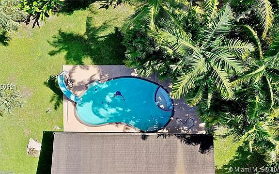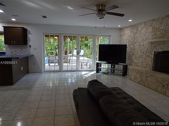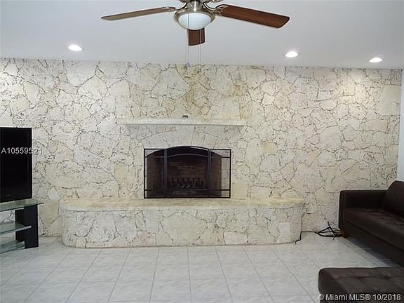 This beautiful 4 BR/3 BA home sits on almost 1/2 acre in Griffing Silver Palm Subdivision. Living room has a huge window to let in plenty of sunshine. Dining room has French doors to the patio. Kitchen has dark wood cabinets with blue Corian countertops, pantry, SS appliances and eat-at counter. Family room has recessed lighting, Keystone fire place & French doors to the patio. Master bedroom has his/her closets. Separate shower & jacuzzi tub & dual sinks in the master bathroom. Outside of home is freshly painted and new berber carpet upstairs. Large "L" shaped patio with pool with slide. Pool is newly acid washed. Pool area is lushly landscaped with palm trees.