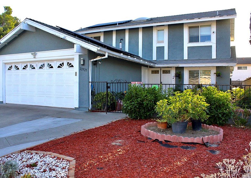 Feel the warmth of this home as you step into this beautifully upgraded, bright and open floor plan with 4 bedrooms (2 upstairs and 2 downstairs). This well designed home has many upgrades which includes: new front door, two tone staircase, upgraded quartz kitchen countertops with soft opening white cabinets, backsplash, stainless steel sink, stainless steel kitchen appliances and under the stairs pull out storage. Master's bedroom has a retreat area and a large walk-in closet with built in organizers. All bedrooms have chandeliers. Bathroom downstairs has been remodeled. This home also features laminate wood floor throughout, solar panel system and new tankless water heater. Dining area leads to a covered patio with pool and spa great for entertaining. Property is located near community park with tennis courts, children's playground and nature filled jog path. Low property tax and no HOA. Easy access to freeways, schools and shopping! This home is a must see!