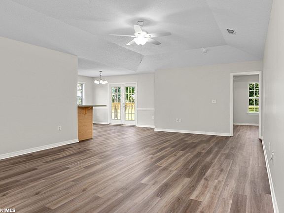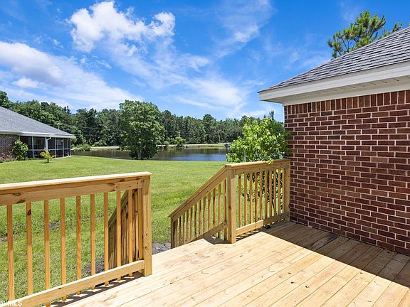 This Lakeside home in beautiful Leisure Lakes in Foley has such a wonderful view! Newly upgraded home that includes new flooring throughout with a beautiful, faux wood vinyl. The entire home has been repainted including the ceilings. A brand new back deck is the perfect place to sip that morning coffee or for enjoying the great view of the lake, and it's a great spot for grilling and entertaining. The open floor plan is so spacious and nice with French doors that open to the back deck and yard. The highly sought after Leisure Lakes community has a clubhouse, outdoor pool, and a fishing pier. This is the perfect location- very close to Beach Express, OWA Entertainment district, and the beautiful beaches of Gulf Shores and Orange Beach.