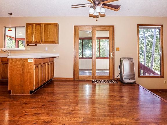 Great Family home in Bluffs West Estates. Lower level finishes, offer gameroom, hobby room, bedroom, kitchen counter/sink area (all you need is a refrigerator) Walk out to very private back yard. Homeowners has added beautiful hardwood flooring upper level, and carpet to lower level. Cozy fireplace in upper level family room. 3/4 bath adjoins our owners suite. Excellent storage and a 13 x 15 workshop with sink in lower level. Owner used the lower level as a separate living area for family member. Enclosed 12 x 22 ft. porch off upper level offers summertime enjoyment, great views too. Owner has made excellent updates in recent years, including new roof, gas furnace, water heater, cooler, and laminate flooring. Cooler in Dining area is central air