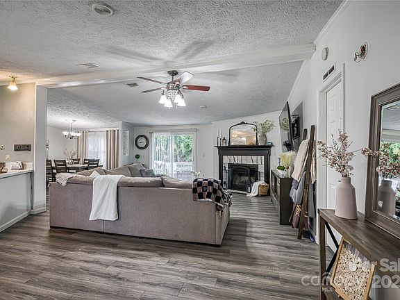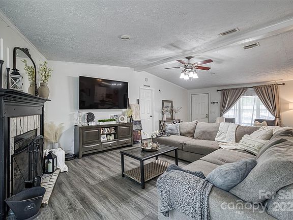 Updated and inviting, this 3 bedroom, 2 bath home offers both space and comfort inside and out. The split floor plan features a generous primary suite with an oversized closet and bathroom. An open-concept layout connects the living, dining, and kitchen, making this home ideal for entertaining. The kitchen offers abundant cabinetry, a center island, and plenty of room to gather, while the living area is complete with a fireplace that creates a welcoming atmosphere. Step onto the large back deck for a seamless transition outdoors, perfect for relaxing or hosting. The backyard is fenced and ready for pets or play, and the spacious front yard includes a storage building. A brand new metal roof adds peace of mind, while the convenient US 70 location keeps you close to it all.