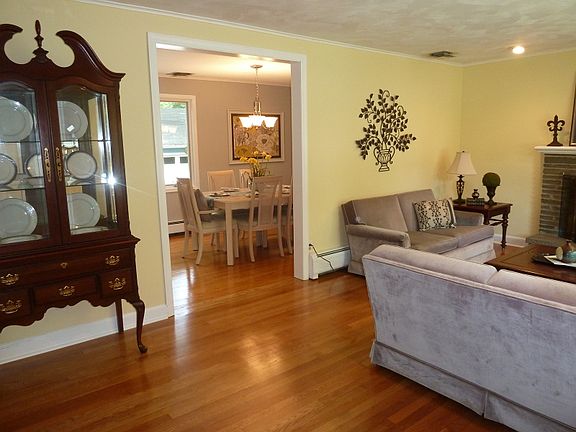Updtd Kitchen w/corian center island w/breakfast bar-New stainless stove, dishwasher & microwave-Refrig 2 yrs old-wood floor & sliders to deck in kit.CAC new 2010. Wet Bar in Dining Room w/corian top,refinished hardwood floors in LR, DR & Hallway.Wood burning fireplace in living room.Master Bath 3 yrs old-furnace converted to Gas 20+ yrs ago-Oil tank removed from basement 5 yrs ago. Hot water heater new 12/11 w/permit- Cedar Walk-in closet in bsmt.Oversized 2 car detached garage.Shed-partially fenced yard.New Furnace Chimney flue liner 7/27/12,Updated Elec Svc & Repairs 7/28/12,Plumbing Repairs 7/26/12,all w/permits,Termite Treatment & repairs 7/25/12. Security System. Move-in condition. Very comfortable home.