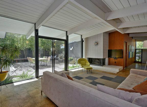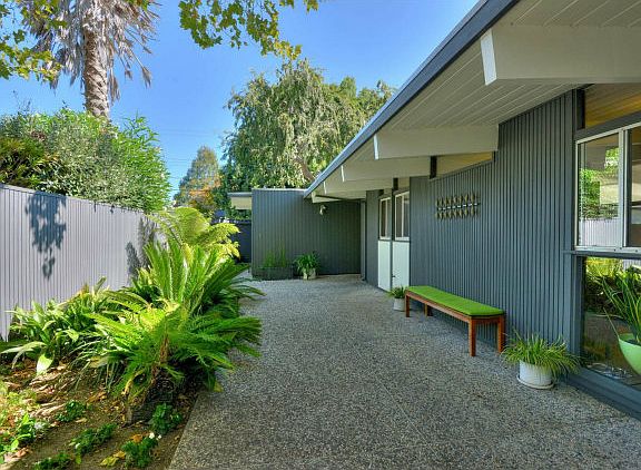 This Mid-Century Modern home boasts an open floor plan surrounding a central courtyard that is perfect for indoor/outdoor living. Remodeled kitchen with European cabinetry, stainless steel countertops and appliances from Gaggenau, Bosch and Sub-Zero. Radiant heat, polished concrete floors, and dual paned windows make this home a welcome retreat. Just blocks to shops, Duveneck Elem & Jordan Middle.