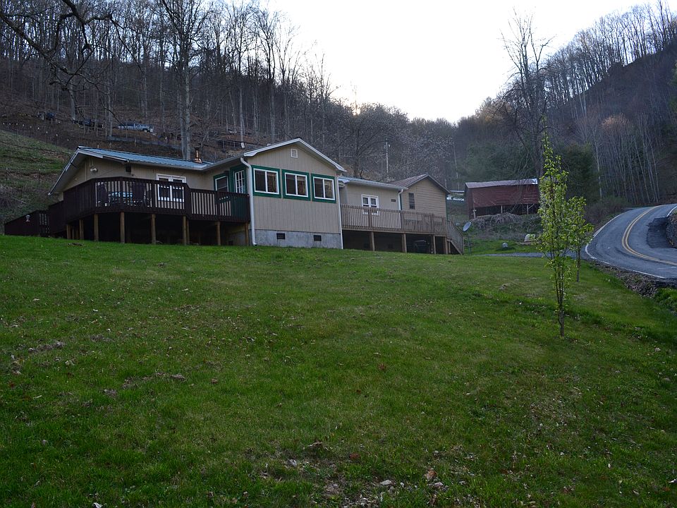 Charming ranch style home on 2.55 acres. Property includes barn, goat shed, outbuilding as well as springs. Large decks on home. Lots of yard space and several flower beds. Cabinet style wood heater. Jacuzzi tub. Tile, hardwood, and carpet. Home has new windows and guttering.