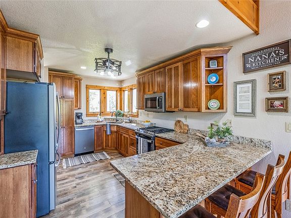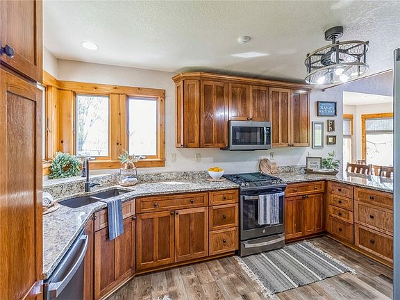 Looking for a country slice of heaven on pavement just west of Madrid? This 1.5 story with a walk-out home sits on just under an acre & has the space & privacy youhave been dreaming of! As you step onto the welcoming front porch, the allure of this home unfolds. The kitchen opens to the dining area and is complete with casual bar seating, new countertops, and appliances. The family room is a stunner with massive windows highlighting the breathtaking views and natural light. You will love the cathedral wood paneled ceiling and floor to ceiling stone fireplace adding so much character to the home! The main level features a generously sized primary suite. Rounding out the main level is a half bath and mud area coming in off the garage entrance. Upstairs, a versatile loft offers endless possibilities for an office, rec room, or den. There are 2 additional bedrooms and a three-fourths bathroom. Need an extra bedroom? There is also a storage room upstairs equipped with plywood shelving that can be removed to turn back into a bedroom should you need it! With upgrades like a new roof, gutters, flooring, appliances, exterior and interior paint, fireplace, and stone, landscaping and geothermal system, this home is energy-efficient and nearly maintenance free! Imagine the perfect blend of serene country living on a paved road, where relaxation and privacy are your new normal! Do not miss out on this rare property!