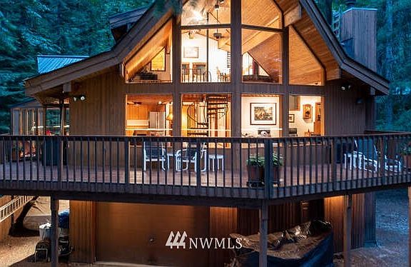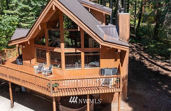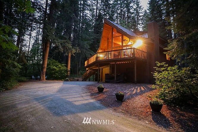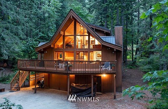 Gorgeous Whispering Pines setting on just over an acre with an immaculate original owner Lindal Cedar Chalet offering 3 bedrooms, 2 baths, 3 levels of living and a serene sun room. Enjoy the views from the indoor spa, relax by the Lake Wenatchee stone fireplace, watch the snow fall through the wall of windows. Enjoy nature walking on one of the many trails or sitting next to the creek or outdoor firepit. The wall of windows brings the outdoors in to enjoy during all the seasons. Newer roof, wood wrapped windows, extra deep garage for all your recreational toys, carport. Close to everything Lake Wenatchee has to offer!