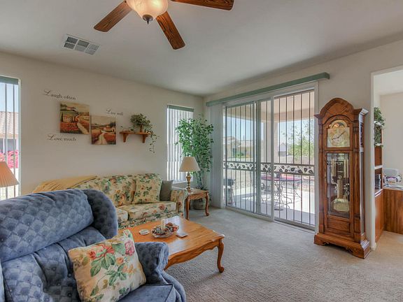 Wonderful, two bedroom home on a corner lot in the beautiful Sundance Adult Community of Buckeye. This split floor plan home offers two good sized bedrooms and a bonus room (option third bedroom). The Master bedroom includes a large walk in closet and a private bathroom with large shower. Other features include neutral colors throughout the home ceiling fans, tile flooring, and much more. The large open kitchen has plenty of counter and cabinet space. The large, fenced backyard includes professional landscaping, pavers and a covered patio. The Sundance Community boasts many activities, including, golf, tennis, gym, sauna, dinning and much more. Don’t miss out on this wonderful, perfectly maintained home. Come and see it today!
