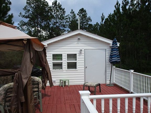 Nice home on private 5 acre tract for sale. This home has a very large front deck and a 2-stage deck in back consisting of a 21 X 10 deck which leads to a 22 x 21 deck for relaxing evenings watching the wildlife. Off of the second back deck there is a 12 x 12 ''man cave'' wired with ac unit. The 20 x 12 carport has a 20 x 12 metal storage building at the end of carport. This property has plenty of room for all your storage needs as well as acreage. About an hour drive from Panama City Beach and a lttle less to Panama City interantional airport.
