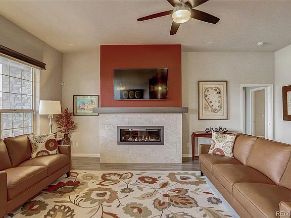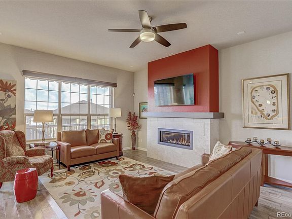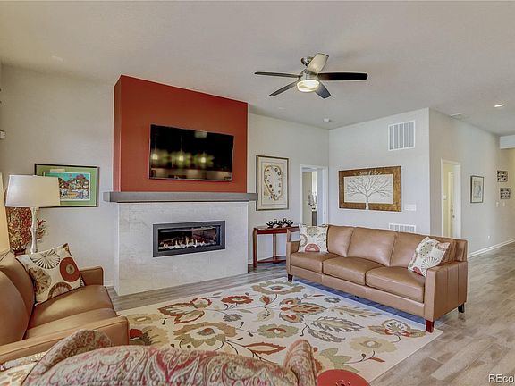 FABULOUS RANCH HOME, 55+ COMMUNITY! Hurry to view this spacious ranch with walk-out basement in the Toll Brothers Inspiration, 55+ active adult community! You'll love the open layout & the quality finishes including the custom fireplace & the extended wood floors. Gently lived in & beautifully maintained, this home is move in ready! Enjoy the mountain views from the main floor & from your extended back deck with motorized awning. Appreciate the expansive seating/serving island in the WOW kitchen with cabinets galore, open to the dining area & great room. The generously sized master retreat features a pocket door at the great room, large walk-in closet, and luxurious master bath with oversized shower. The full walk-out basement offers room for expansion with multiple windows & rough in bath. The beautifully landscaped fenced back yard backs to a green space with a sidewalk from the front to back yard. plantation shutters, upgraded light fixtures, quick access to the clubhouse with pool, tennis, pickle ball & extensive activities, this home has it all. Schedule a tour today!