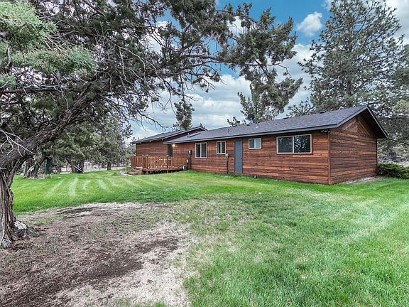 A very nice lifestyle awaits just outside the Bend city limits on this private small acreage. Plenty of room to build a barn or animal stalls if you are looking to bring your horses, goats or chickens. Perimeter fenced with no climb & a pasture-style gate at the entry. Enjoy close access to public lands and the sense of community that Cimmaron City offers! One level home with 3 beds & 2 baths. Primary bedroom is en-suite w/vaulted ceiling, exposed beams & doors to outside decks. Good separation from other beds/bath. Living room has nice Bay window overlooking the circular drive. Kitchen with double sink and hardwood flooring. Plenty of room for gardening adjacent to the beautiful lawn with underground sprinklers. Huge 30X24 attached shop/garage with room for all your toys or use as a shop. 10' walls, concrete floor, insulated & heated with both 220 &110. Newer comp roof. Beautiful exterior Cedar siding and decking which has just been resealed. Riding mower included!