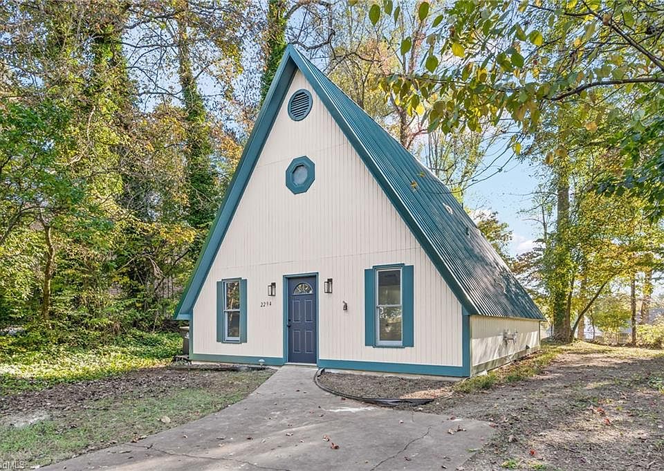 Welcome to this charming and unique A-frame retreat in the heart of Winston-Salem! This beautifully updated 2-bedroom, 2-bath home blends cozy character with modern living, featuring impressive vaulted ceilings in the living room and luxury vinyl plank flooring throughout. The contemporary kitchen is equipped with new appliances, custom tile backsplash, and sleek finishes that make everyday cooking a joy. Enjoy peaceful mornings or evening gatherings on the spacious deck overlooking the fenced-in backyard surrounded by nature. With its warm ambiance, thoughtful updates, and move-in ready condition, this home offers the perfect blend of comfort, style, and serenity.