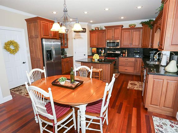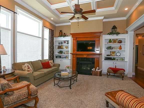 Awesome location for this spotless, well kept, like new home! 3 bedrooms, 2 baths and spacious 3 car garage. Featuring lighted 11 ft coffered ceiling in living room with direct gas vent fireplace and large built ins. Kitchen features cherry cabinets, cherry flooring , granite counters and a pantry. Lighted tray ceiling in master bedroom. Beautiful crown molding and unique trim work through out. Stamped concrete walk way up to solid wood entry door. Stamped concrete backyard patio and deck overlook professionally landscaped lot with many perennials. Don't miss out on this quality built Gary Miller home!