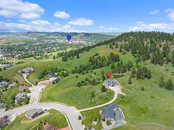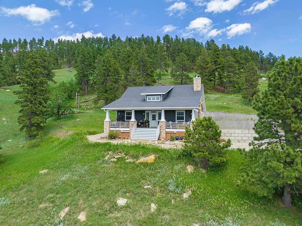 Listed with Jim Allison, Allison Real Estate 605-381-3068. You won't find a better view in Sturgis. The front porch deck is covered as well as the back. The view from the front will take your breath away. The sellers have done extensive landscaping with this property and have covered every detail and kept it natural to the area. You enter a custom built stairway to the front porch. From there you have 180 degree views of the City of Sturgis, Vanocker Canyon, endless views. Enter into a spacious living room, dining room, kitchen open with floor to ceiling fireplace for those cold wintery evenings. From there you step out the backdoor off the kitchen to another 9x40 covered very private porch, with natural gas plumbed to the BBQ grill. Sit on the porch with a glass of your favorite cocktail and enjoy the beauty of all the large pine trees.