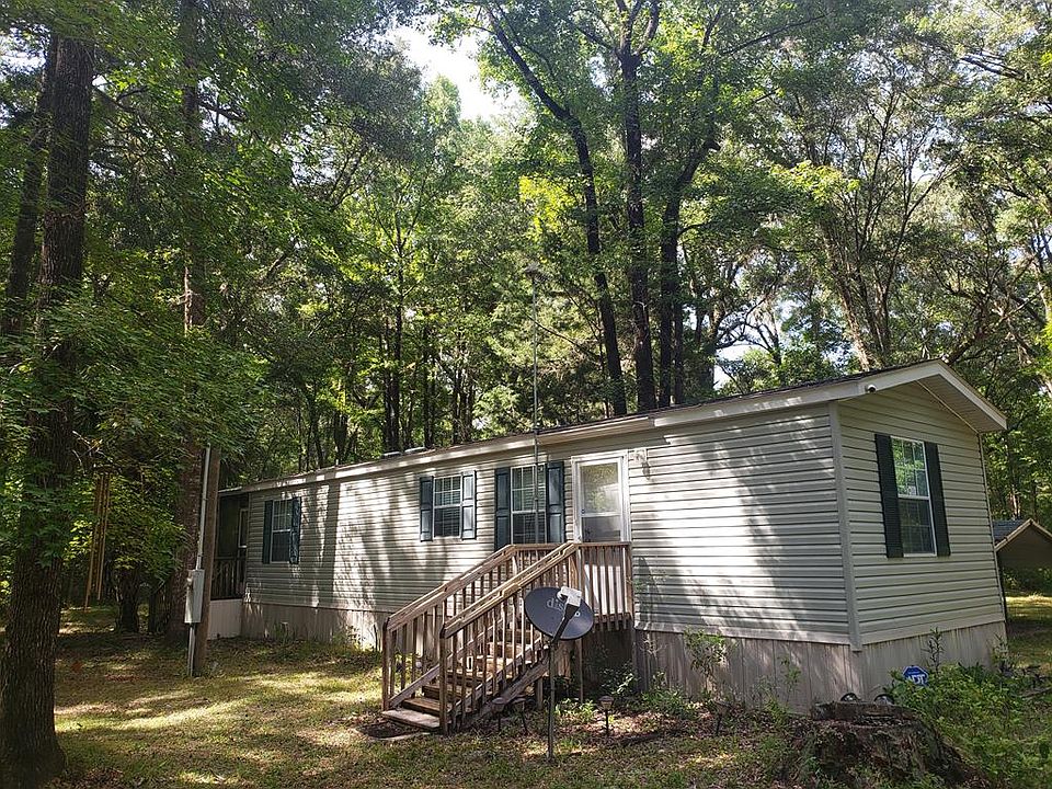 More photos coming soon. Cute, well maintained, move in ready, 2 bedroom 1 bath SWMH on 9.56 acres. Furnishing included. Very quiet and surrounded by trees for privacy. Sit on the back porch and enjoy watching the deer, turkeys, birds, squirrels and rabbits play in you yard. Property is short drive to the Historic Beautiful Suwannee River that offers fishing and many other water activities. Bring your boat, jet skis, paddle boards, kayaks and canoes. This is 3 parcels to total 9.56 Acres. Can be sold separately. Home on 2.28 acres, home on 4.56 acres or all.
