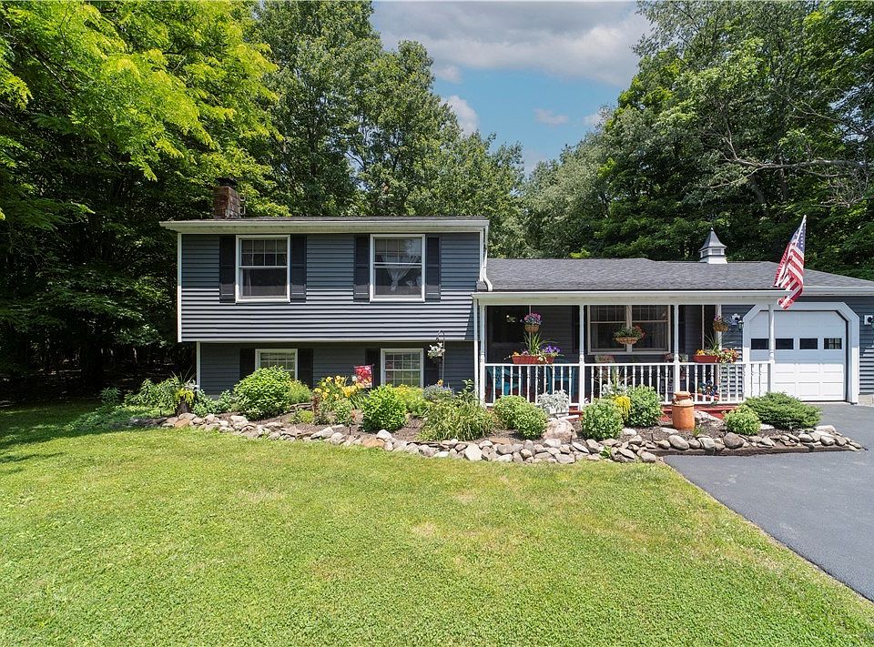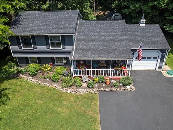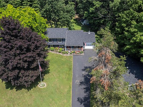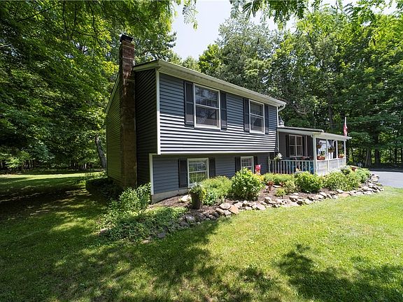 Welcome home to this little slice of paradise! 4 levels of living, 3 bedrooms, 2 full baths and a 1 acre lot plus 3 garages! When you pull in you will notice the freshly sealed driveway which wraps around the detached garages and the new beautiful siding. The front porch was just painted and leads you to the main living level. There you'll find bamboo hardwoods, freshly painted kitchen with additional cupboards, dining room and a slider that leads to a back deck and a private back yard!! When you head upstairs, the hallway and 2 bedrooms have LVF and newer carpet in the owners bedroom. Both full baths have been updated. On the lower level, there is slate tile with a laundry room and storage room along with a wood stove. Washer & dryer stay! The 4th and lowest level offers tile flooring with a kerosene heater. The detached garages offer storage, workshop and a lean-to. Don't miss the opportunity to own this beauty! Come see it today!