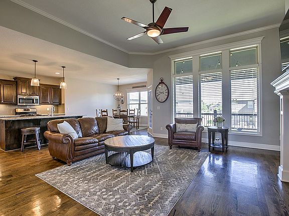 When you step through the door you will know this is home! High ceilings and large windows add to this already perfect,open floor plan. Chef's kitchen with gas range,big island,huge walk-in pantry,tons of counter/cabinet space. Large master suite with dual shower heads,jetted tub,LARGE walk-in closet, double vanity makes the master bedroom so awesome you may find it hard to leave! Finished walk-out basement with wet bar & lots of storage. Covered deck, privacy fence & a flat backyard complete this fantastic home.