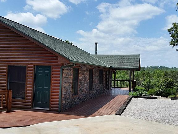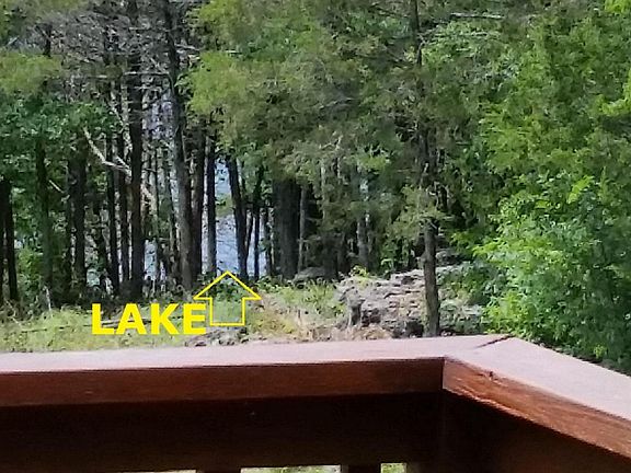 Private log sided lakefront cabin home and detached garage with apartment inside on 4.24 acres with 100 feet of lake frontage and boat slips available less than 2000 feet away. The 1,320 sq ft home features a wonderful rustic feel inside with huge kitchen and dining area that includes a wood stove, master bedroom and bath with walk-in shower, another bath with soaking tub, and a multi-use room that has pull down stairs for access to a hideaway room in the attic and lots of storage. Inside the detached garage is a 438 sq ft one bedroom apartment with kitchenette that is handicap friendly and includes a walk in jetted tub. Don't miss the garden area and shed plus the incredible trails that have been blazed through the woods to the shoreline. Great place for independent lakefront living.