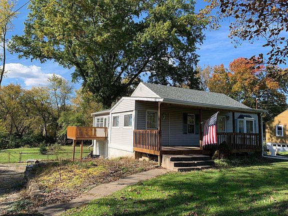 GREAT Location!! Mins to Bright and interstate. 3 bedroom 1 bath ranch on .41 acre. 2 front door entrances, one to kitchen area other to LR. Oak Hdwd floors, Full basement, Lrg closets throughout, 2-car attached garage, New 12x10 back deck off 3 season room, Fenced backyard. Roof is 3 years old, newer HVAC unit, vinyl siding.