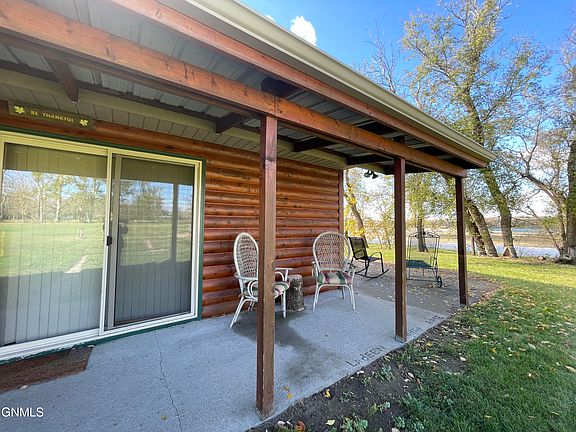 RIVER FRONT PROPERTY: Filled with charm, this story and a half log-sided home is nestled in alongside the Missouri River in a secluded location just south of Washburn. You will feel yourself begin to unwind as you drive the tree-lined lane. The open floor plan with its soaring wood ceiling, stone fireplace and wall of windows offers gorgeous river views and is sure to please. The kitchen is well-outfitted with hickory cabinets and a large island with breakfast bar. Two bedrooms and a full bath with laundry round out the main floor. The upper level offers a loft with log railing overlooking the living area and a primary suite with half bath. Sliding doors off of the living and dining areas lead to a patio with views of the river through the trees. This view is likely to stay undeveloped with the Cross Ranch located directly across the river. Just below the home you'll find a tranquil sitting area with firepit on a bench overlooking the river. With its remote location near the Painted Woods Wildlife Management Area, you'll find that wildlife abounds here. You're likely to see pheasants, turkeys, ducks, geese, deer, moose and more. With 340 ft of river frontage, this home sits high above the river, but there is a sloped area carved out of the bank that allows for easy access to the water so you can launch small watercraft, kayaks, etc. Both Wilton and Washburn have boat ramps just minutes away for putting in boats or pontoons. The oversized 3-stall garage has additional space for a work shop, party room, etc. that offers additional space and its open rafter system was designed to allow for an amazing amount of storage. The yard offers three RV parking spots complete with electricity and septic, so you can invite guests to join you as you enjoy this amazing weekend getaway or year round home. Take a look today!