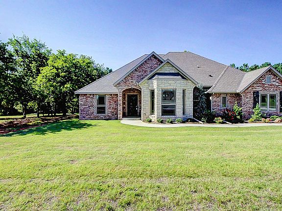 This lovely home can soon be yours! Nestled on a little over an acre, this home is surrounded by a tall tree line on the south and east side giving you the privacy you deserve. Step inside to your beautifully tiled entryway! The home has a spacious kitchen with a large dining area. The spacious living room boasts a wonderful fireplace for those soon to be colder Oklahoma evenings. The large master bedroom has an en-suite master bath with separate his and hers closets, jetted tub and gorgeously tiled shower. Bedrooms 2 and 3 share a hall bathroom with a tiled shower. Other amenities include the spacious 2 car garage, knotty alder wood, and Italian marble vanities in the bathrooms. If you are looking for a great place to entertain, you will be pleasantly surprised with the covered back patio. The home has an in-ground storm shelter so you can rest easy during storm season. The fenced yard has double access gates on the west end making it an easy place to park an RV.