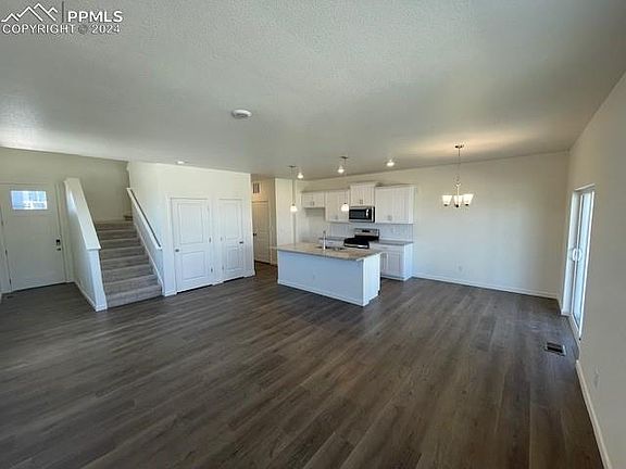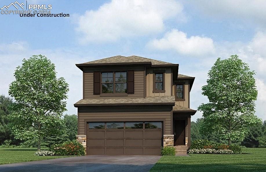 This brand-new two-story floorplan is the perfect spot in Monument to call home. The open concept on the main level features a stunning kitchen featuring an island, granite countertops, and stainless-steel appliances. The spacious upstairs features three cozy bedrooms with quartz countertops in the bathrooms, a dedicated laundry room, and excellent storage. Enjoy modern luxuries like air conditioning, a tankless water heater, and America's Smart Home Package for added convenience. Includes front yard landscaping with irrigation and side wing fencing.