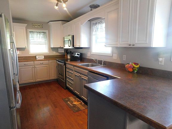COUNTRY LIVING- Gorgeous 4 bedroom, 2 bath remodeled home on just under 5 acres. Hardwood floors thru out lower level, tiled bathrooms, updated kitchen and large additional family room with fireplace. Modern and tasteful farmhouse décor. Great deck overlooking your great views of your back yard. Large barn style garage with upper loft for storage, raised garden area, and chicken coop. Many updates to this wonderful home. A-2784