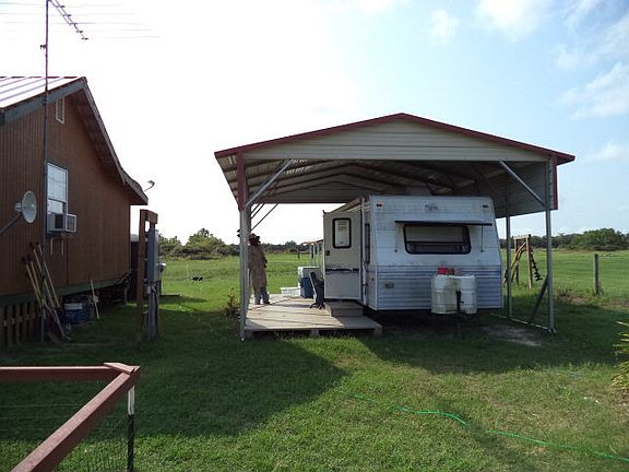 Going green!! Hardi/pier & beam (640sqft) cov. porch 2/1 open concept, 2 WAC, on-demand waterheater, propane stove. PLUS: 12'X36' shop/bunkroom; 24'camper w/patio cover; 3 storage bldgs., all fenced/gated. Nowell: alternatives: 5000 gal. water storage system. New aerobic septic (1/8/2014)system, fenced garden, tractor shed/mower w/attachments. Extremely energy efficient! 1.5 miles from Seadrift, paved access. Survey at buyer's expense. Seller will require 30 days POST CLOSING to vacate. Seller financing considered: 50% down, 7% int. 5 year term.