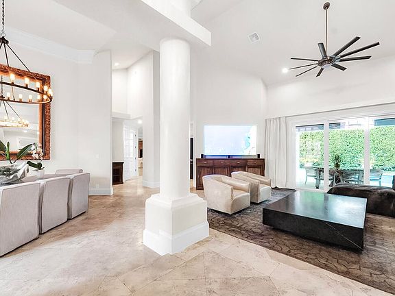 Unparalleled living experience located in the hidden gem community of Polo West Estates. Superb for the equestrian enthusiasts to leisurely golf cart over to the Wellington International show grounds and Global Dressage. Near shopping, restaurants, and A-rated schools. This one of a kind custom built home captures your attention with its dramatic vaulted pecky cypress ceilings, custom built-ins, a chic kitchen with a large center island, light and bright interiors & beautiful travertine floors throughout. This home has 2 spacious family rooms and is perfect for entertaining guests or relaxing with family. Featuring large impact sliding doors and ample windows that fill the space with natural light. The sultry master suite is a true oasis, offering a spacious bedroom and sitting area with outdoor access, 2 custom walk-in closets and a luxurious en suite bathroom. The additional 4 bedrooms are generously sized and offer plenty of room for family and guests. In addition there is a large, well appointed office. Outside, you'll find a beautifully landscaped backyard with circumference hedges for added privacy, heated pool and spa, a covered patio, 4000+ sqft of shell stone pavers, built-in grill, plenty of lawn space and lovely views. This home has been well cared for & maintained. New roof was completed October 2023, 3 newer a/c units, pool resurfaced & many more updates and upgrades.