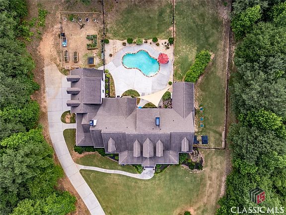 Gorgeous, private home sitting on 4+ acres with an in-ground pool and no HOA. Located in the Walnut Grove School District. Must see this custom built home complete with 2 large rocking chair porches and a screened porch off the kitchen. From the front door you're greeted with a 2-story grand foyer, dining room and views of the family room. Large family room with fireplace, built-ins and a wall of windows that give off an abundance of sunlight. Great open floor plan that's perfect for entertaining. The kitchen has stainless appliances with open shelving, soft close cabinets, quartz countertops, a big island with seating and a breakfast area. Off the kitchen is a large keeping room with a fireplace. For more storage, there's also a butler's pantry leading into the dining room. The owner's suite is located on main floor and has a large sitting area with a fireplace and a private porch. Two additional bedrooms are found on the main with a jack and jill bathroom. Large laundry room with sink and a half bath is also found on the main. Upstairs over the garage, there's a bonus room with a bathroom, that's currently being used as a bedroom. There's over 1600 sq ft of conditioned space that can be turned into two teen or In-law suites. The basement has 3158 sq feet that is ready for you to finish your way. Make it into an Entertainment room, office, craft room, additional bedrooms, or an apartment for additional family members. There's also a finished half bath downstairs. The backyard area is just amazing with lots of room for entertaining, with a beautiful in-ground gunite pool that's waiting just for you! *****Sq. footage is an estimate, but not guaranteed******