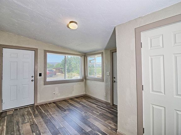 Owner carry option available with 20% down at 7% interest due in 3 years. . . Hello - Views! On 2 acres of irrigated property, this ranch home feels practically new with all of the updates. Beautiful new flooring and windows. With summer just around the corner keep cool with the new evaporative cooler. The layout flows nicely between the living room and kitchen. Master has great closet space and storage, a full bathroom and new floors. Squeaky clean kitchen with maple cabinets, plenty of prep space and all of the appliances stay including washer and dryer. Detached 2 car garage, 1 carport and shed for yard tools. Home has a metal roof. Enjoy the new deck, the pergola and the views! Field continues north to the "Rooster" Corner!