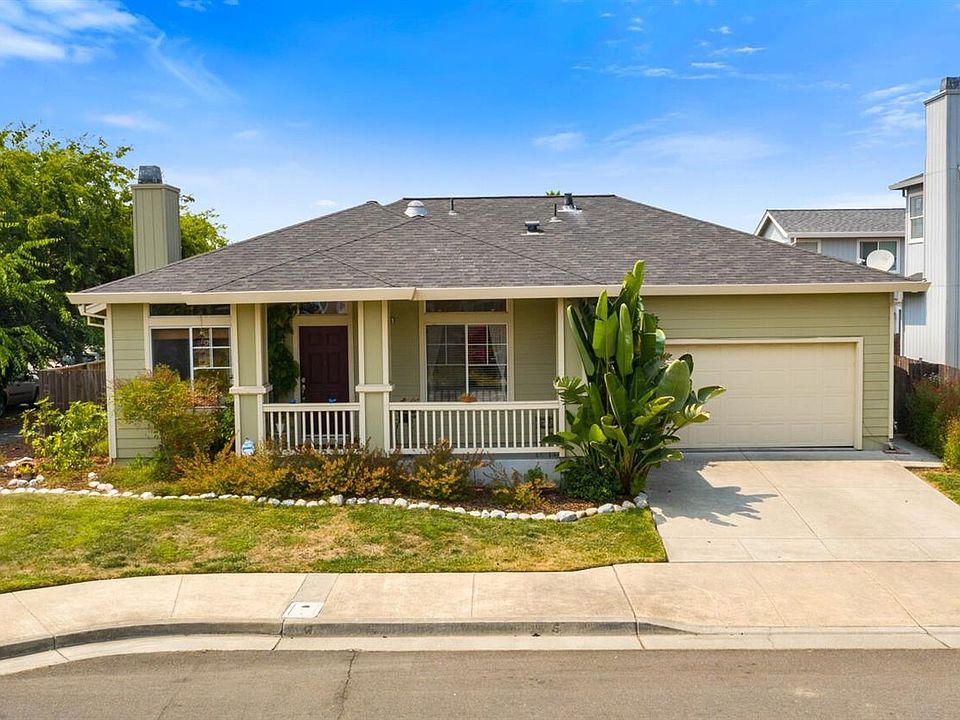 A lovingly maintained and upgraded signle-level home, move-in ready. Hardiplank exterior, front porch entry, attached 2-car garage. A charming, clean interior with wood floors, fireplace, formal dining area and eat-in kitchen, stylish window coverings, master bedroom with walk-in closet. A tree-lined corner lot, with generous clay tile patio. In a desireable school district, convenient to shopping and commuting.