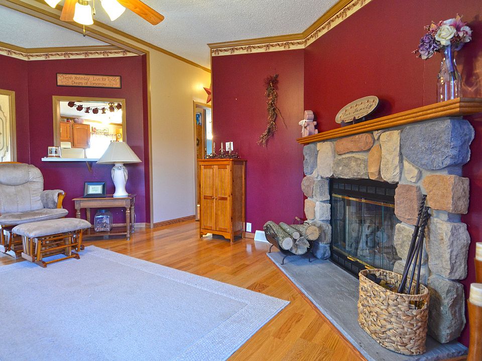 Country Living on 2.5 Acres overlooking heavy timbers with newer move-in-ready 1600 SF Ranch style home featuring 3 bed, 2.5 bath, cathedral ceilings, formal dining area and beautiful stone fireplace. Full basement with studs and insulation ready to be finished for more living space. Wrap around deck, detached 2 car garage, and a LOW TAX RATE to enjoy life. Check out the virtual tour !