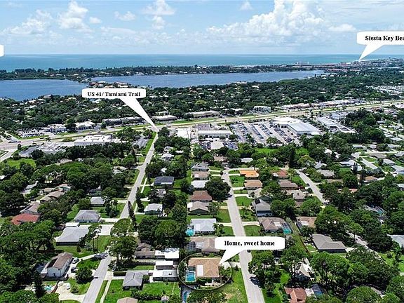 Gulf Gate Pines is a small, very private and highly desirable neighborhood located just off 41 and is close to everything. With just 42 homes, seclusion is the key here. This 3 bedroom + Den, 2 bath pool home has been maintained with a lot of care and is in ready-to-move-in condition. Just the right size of over 1800 sf with desirable split floor plan, it'll sway you with its comfort and convenience. The Kitchen, with gorgeous granite counter tops and wood cabinets along with black appliances, create a dramatic, rich appearance. There is a large formal dining area just off the kitchen and the living room is equally spacious. Both Bathrooms have been renovated with the walk-in showers with ceramic tiles throughout. All sliding doors to the lanai with oversized pool are pocketed and open completely. Even the kitchen window opens to the lanai where granite bar counter top is ready for a comfortable casual eating treatment of your friends and family. And the Lanai is your own secluded and completely private tropical paradise. Professionally designed and highly cared for lush landscape with lights submerge you in truly tropical luxury. The pool is heated and you also have an in-ground spa. Combine all this with the within few minutes proximity to Siesta Key, Gulf Gate shopping and restaurants, and an excellent School district, this home won't last long.