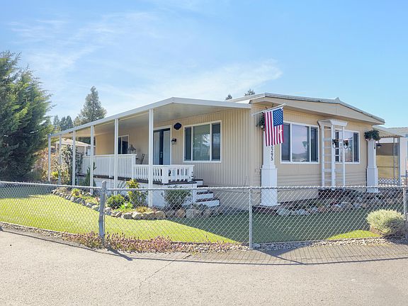 Come see this beautiful Pottery Barn charmer! This beautiful 2 bedroom, 2 bath home shines like a star! This home was renovated with no expense spared-new flooring, newer roof, ductless heating and air, dual pane windows, exterior doors, appliances, updated faucets, sinks, the list goes on and on! The view from the deck is second to none! The lot is fully fenced and meticulously landscaped with a covered carport and an extra storage shed. Now, about the Park- Roguelea Estates, Grants Pass' premier 55+ manufactured home community sitting right along the mighty Rogue River. Living in this community you will have access to a private park along the river where you can watch the famous jet boat races, enjoy river wildlife, and have picnics with your friends and family. The beautiful lake offers trout and bass catch and release. All potential buyers must be approved by the park (easy process.)Park does allow pets with management approval. Come see this home and all it has to offer today!