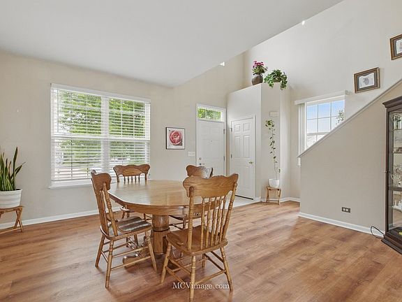 Beautiful home in Aurora's highly sought after Amber Fields! Prepare to be impressed as soon as you walk in and see the soaring 2 story foyer. Open concept first floor with 9 ft ceilings. Kitchen features all stainless-steel appliances, 42-inch cherry cabinetry, quartz tops, pantry, and opens into eating area and family room. Family room is wired for surround, loaded with sunlight and with a view of your backyard. 3 generously sized bedrooms upstairs and 2 full baths. 2 of the 3 bedrooms upstairs have walk-in closets. Finished basement with additional family room, lounge area and crawl space perfect for storage. Large fenced-in backyard with brick paver patio. New Roof in 2016, Windows in 2022, Furnace in 2011, Water heater in 2017, Kitchen appliances and quartz tops in 2022, Washer and Dryer in 2022, New flooring on 1st and 2nd level in 2022, Basement flooring in 2025. Welcome Home