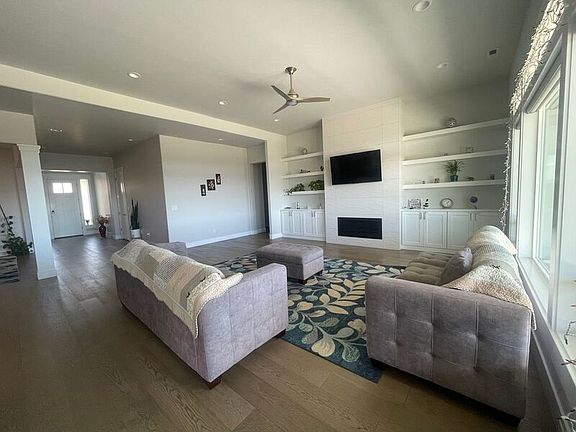 Step into luxury! This sprawling rambler stuns from the grand entrance to the breathtaking views. High ceilings accentuate the open floor plan, perfect for entertaining. The dining room with built-in cabinets seamlessly flows into the great room, featuring expansive windows that capture the stunning Tri-Cities panorama. A fireplace with custom built-ins anchors the great room, which opens to a chef's dream kitchen. Quartz countertops, stainless steel appliances, and a huge pantry with natural light make cooking a pleasure. Unwind outdoors on the expansive patio, taking in the enchanting views. The luxurious primary room provides a private retreat with a soaking tub and step-in shower. The large utility room has tons of space and hook ups for your washer/dryer. A finished three-car garage, with an oversized third bay perfect for larger vehicles, adds convenience. Smart technology throughout, including a keyless entry lock, smart thermostat, doorbell, and garage door opener, ensures a comfortable and secure home. This community is complete with resort-style amenities such as pool, clubhouse and walking paths. 14 Month Initial Lease Term Rent $3900, Security Deposit $3900 All Utilities and Lawn Care Is Tenant Responsibility All Adults Must Apply, Application Fee $52 Per Adult. 25% Of The Security Deposit Is Due As A Holding Fee One Applications Are Approved