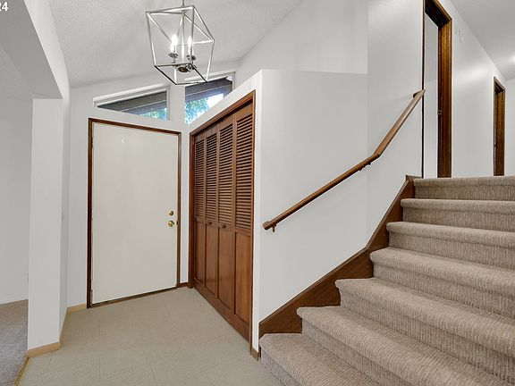Lovely split-level home situated in a great southwest Eugene cul-de-sac location! Brand new flooring and fresh new interior paint throughout. Kitchen has tons of storage with a wall of cabinets, built-in range, built-in dishwasher, garbage disposal, eating bar that is open to dining room with slider to the spacious deck. Primary suite includes private full bath and closet. The fenced backyard offers a sense of privacy as it borders an open area with no immediate neighbors. Oversized 2 car garage plus covered RV parking behind the fence, raised garden bed.