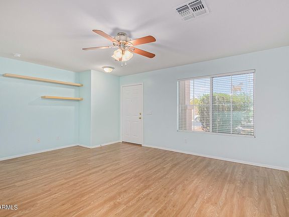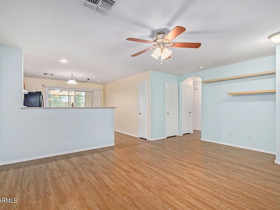 Freshly painted 3 bedroom 2 bathroom home with mountain views! Newer luxury vinyl plank flooring in main living area, plush carpets in bedrooms. Home includes all appliances, a new soft water system, and a reverse osmosis system. Home has a lovely Arizona room, extended backyard patio with pergola, grass area and a 12x8x7 Tuff Shed. Garage includes custom cabinetry. This fabulous home is move in ready!