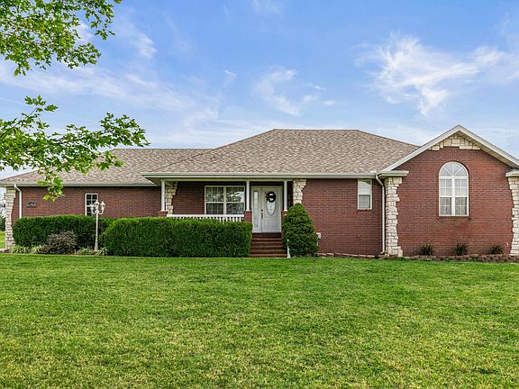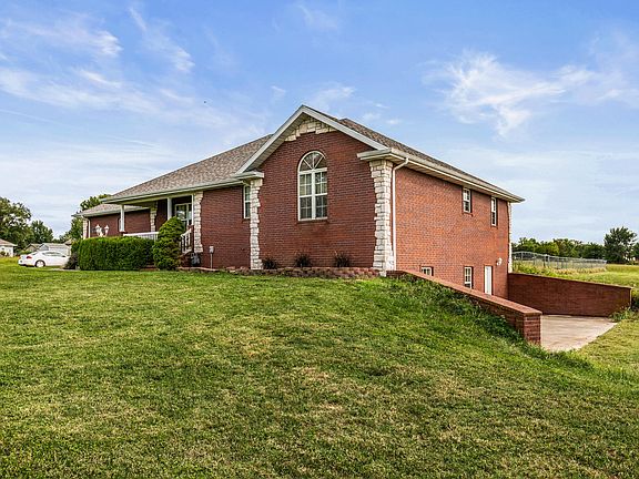 All brick, walkout basement home on 5.09 acres! Main floor offers living room with tray ceiling, hardwood flooring and gas fireplace. Kitchen has plenty of cabinet space, breakfast bar, stainless steel appliances, pantry and dining area. Master bedroom has vaulted ceiling and its own private bathroom featuring jetted tub, dual sink vanity, walk-in shower and walk-in closet. There is a second bedroom, full bathroom and laundry room also on main level. Downstairs features a second living area with gas fireplace, office nook, two bedrooms, a full bathroom with walk-in shower, and two additional rooms that could be hobby rooms/offices/etc. Side walkout basement has huge patio area great for entertaining! Covered deck out back with nice fenced yard. Land is all cleared. 1yr old roof. Great location close to town and just a short drive to Hwy 60! Call to schedule your appointment today!