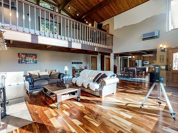 Double gated retreat. Pristine terraced landscaping throughout acreage with walking trails, pond, wildlife, and horse area are waiting for you at this mountain/ocean view home sitting on 59 acres. Two-story, 4,199 sf custom 1987 home: includes large bedrooms, fireplace and wood stove, balconies, patios, decks, ductless heating/air. Detached shop or additional garage also included.