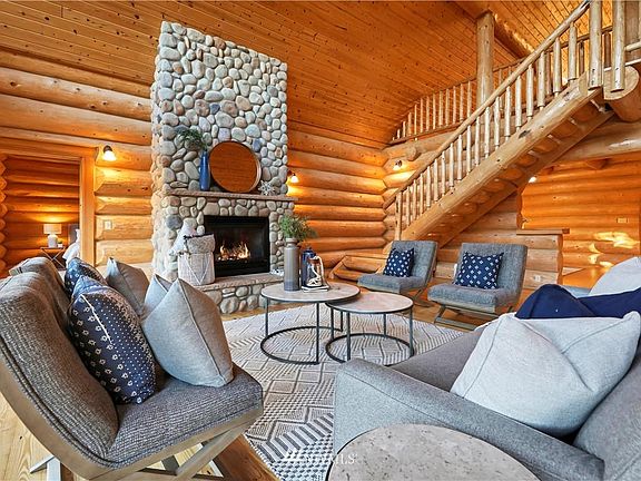 This stunning 5,000 sq ft log-built home will leave you speechless! ~15-acre natural setting w/scenic territorial views, charming pond, & orchard. Lrg barn for toys or start your hobby farm! Vast great room features floor-to-vaulted-ceiling windows w/TONS of light & river rock floor-to-ceiling FP. Big kitchen w/island, lots of storage. Dining room leads to lrg deck wrapping 3 sides of the home! Primary Suite w/door to deck, gas wood stove, lrg walk-in closet, 5-pc bath. Working from home? Make one of the 2 main floor bdrms a private office or use the loft w/amazing views, built-in bookcases, room for a lrg desk, AND a pool table to occupy you on your down time! WANT MORE? 1,965 sq ft full MIL in basement. THIS is your idyllic escape estate!