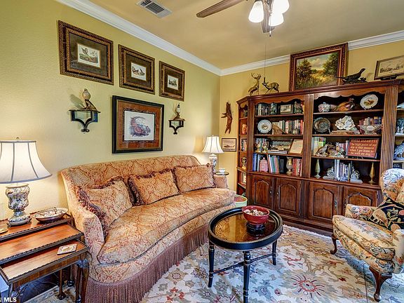 This Beautiful 4 bedroom 3 bath brick Gold Fortified home located on the 17th fairway of the Vista Course in Glenlakes Golf Community is a rare find. This estate home has so much to offer. From the moment you enter the home you notice the large rooms, crown moulding, gas fireplace, and the popular split floor plan. The office/living room/5th bedroom is spacious and has beautiful French doors to give the room privacy. The Kitchen is a chefs dream kitchen with a gas stove/oven, granite counter tops, stainless steel appliances, breakfast area, lots of counter space and boasts 2 pantries. The Primary bedroom is open and spacious with room to have a seating area for your comfort.The two walk in closets are custom designed.The Primary Bath has a separate tiled shower, garden tub, double vanity and private water closet. Your guests will enjoy their own privacy with the guest rooms located the opposite end of the home from the Primary Suite. The Dining room has plenty of room to entertain all your new friends, your family and your many guests that will be visiting. The all weather room is one of the largest rooms in the home (27'x18') with high impact windows. This room can serve so many purposes for your family! This Fabulous home has gutters surrounding the home, newly installed sprinkler system, two year old Koehler All House Generator, 50amp connection for an Rv, hurricane easy install shutters, and storage galore.This home is minutes from the sandy white beaches of the Alabama Gulf Coast and the OWA entertainment area. This is a MUST SEE estate home in a beautiful Golf Community. Schedule your appointment to see this amazing estate home.....your new life awaits you!