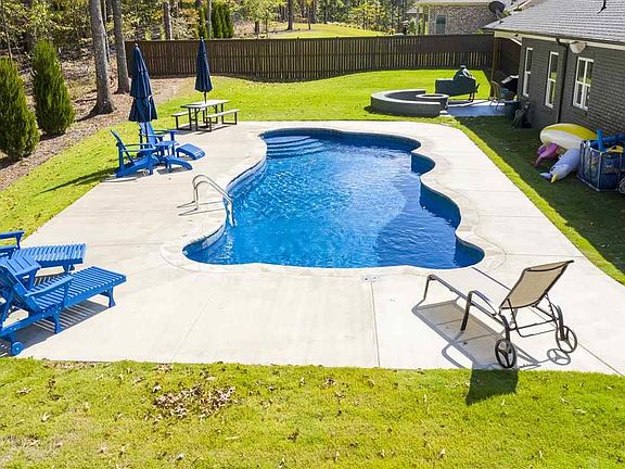 One level living in highly desirable Hoover neighborhood. This 1-yr old all-brick beauty offers open concept living on a perfectly flat fenced lot, 3 car garage, privacy, gorgeous saltwater pool & built in firepit & seating. This home is located in Brock Pt, which is zoned for Spain Park schools, boasts sidewalks, a 13 acre lake & beautiful mountain views. This home includes 3 spacious bedrooms, plus office/study w/French doors, 2 & half baths, huge kitchen island w/stunning quartz counters, stainless appliances & opens to great room & dining room. Lrg master w/fabulous master bath, free-standing tub, his & her vanities, California closet in master closet. Enormous laundry off garage & separate mud room. Covered porch, ideal spot to watch kids in the pool or morning coffee. Come experience the Brock Point lifestyle.