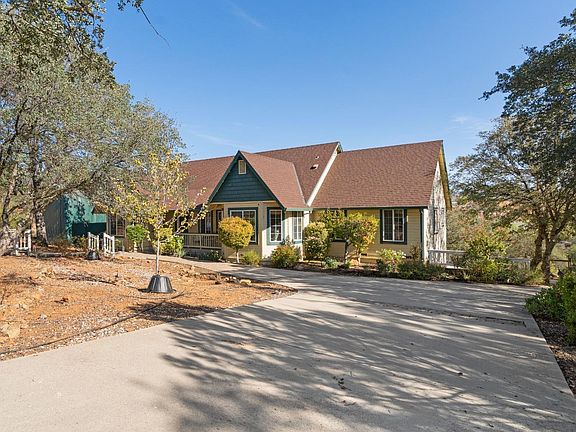 This is the spacious country cottage you've been waiting for! Enjoy the very best of country and lake living! From the moment you drive up, you'll fall in love with the country trellis, curb appeal and charm. Located in a quiet, desirable area in Copper Cove Subdivision on 1.2 acres, this home truly has it all! A fully-enclosed RV/boat parking structure is perfect for year-round toy storage. The oversized garage and long concrete driveway leave plenty of room for guests and projects and the side entry-access to the fully-fenced backyard is perfect for your animals, ATV or tractor. The icing on the cake is a new, 2nd, fully-permitted backyard structure with awesome wrap-around deck, perfect for a man-cave, she-shed, fitness or workout studio, home-school room, workshop, guest cabin and more. Not currently zoned for living space, but buyer could look into converting into an ADU! Possibilities are endless. Truly a one-of-a kind property! Take in the peaceful foothill views and wildlife from the covered front porch or rear Trex deck. Space to roam, garden, play, add a pool and more. Concrete slab is in just waiting for a hot tub! Enter to an expansive & bright great room with new luxury vinyl plank flooring throughout all living spaces, hallways & kitchen, plush carpeting in 2 bedrooms and new wood-look flooring in 3rd bedroom/office. The great room features a propane fireplace for winter evenings. The inviting kitchen is a delight with granite countertops, island with sink, breakfast bar, stainless-steel appliances, quaint dining nook, pot-holder, + a large, glass-doored pantry. The over-sized owner's suite is located on the opposite end of the home for privacy. The attached bath has dual sinks, granite-slab counters, soaking tub, separate shower stall, and two closets. The two guest bedrooms on the other side of the home are spacious and bright and they share a 2nd, upgraded guest bath with granite counter, tub & shower. Dual-paned windows, a generous laundry room, garage storage-loft area and under-house storage are additional bonuses. This highly desirable Choctaw area of Copper Cove features stunning foothill views and privacy with large parcels. No rear or direct left-hand neighbor here! Gain access to all the wonderful lake-side amenities of the Kiva at Lake Tulloch along with Black Creek Park with gym, clubhouse & more! You're minutes from the lake, Copperopolis Town Square for dining, shopping, and events, award-winning golf at Copper Valley & wine tasting in Town Square or Murphys. Experience winter snow fun at Dodge Ridge or Bear Valley, hike in Yosemite or Big Trees, explore nearby historic downtowns... there is SO much to do in Calaveras and nearby Tuolumne counties! Copper Cove HOA is only $22/month! Perfect for full-time living or a weekend or vacation retreat away from the hustle & bustle of city living. Just 1 hr from the Valley & 2 hrs from the Bay. Minutes from HWY 4 for commuting. Come & see why life is better here!