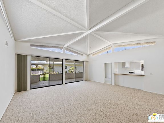 This mid-century modern home is located in the highly desirable Canyon Estates community, an area envisioned by renowned architect Charles DuBois. His signature style is reflected throughout the property, showcasing clean and simple lines, high ceilings with clerestory windows, open floor plans, and an abundance of windows that seamlessly blend indoor and outdoor spaces. The stand-alone residence offers two spacious bedrooms and two full bathrooms, making it ideal for either part-time or full-time living. The kitchen is both comfortable and functional, featuring a separate breakfast area that creates a welcoming atmosphere. The pass-through bar area adds extra convenience, especially when entertaining guests. The primary bedroom is generously sized, featuring ample closet space and a dedicated dressing area. The second bedroom, distinguished by its high ceiling, walk-in closet, and large windows, can serve as a comfortable guest suite or a versatile den. Additional highlights include large rooms, excellent closet and storage space, a two-car garage, and in-unit laundry facilities, providing all the amenities needed for modern, convenient living. This home is situated on fee-land, meaning you own the land outright. It has been freshly painted and carpeted, and all new copper piping has been installed, making it move-in ready and awaiting your personal design touches. Canyon Estates offers a wide array of amenities for residents, including 15 pools, 12 spas, tennis and pickleball courts, and a PAR-3 golf course. The clubhouse features a fireplace, lounge area, and game room, while the well-equipped fitness center is designed to meet both cardio and strength training needs. The community's low density, absence of overhead wires, and lack of land lease further enhance the appeal and comfort of this exceptional property.
