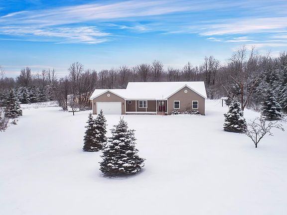 Video Link ~ https://youtu.be/S36rqAlCzG4 Country setting but close to town, this is it! This 3 bedroom, 3 bath ranch, and 30' x 40' pole barn sits on 10 acres. Open concept with vaulted ceiling, foyer, and large main floor laundry. Large Kitchen has solid surface counter tops, island and pantry. Dining room has door wall leading to 13'8'' x 24'2'' deck. Master suite with 6'10'' x 8'11'' walk-in closet, master bath with shower & soaking tub and door wall leads to private deck all set for a hot tub. Attached garage with 2 exterior entrance doors. Home has a VanEE Air exchanger system, newer furnace, and water softener. 13 Block basement is a blank canvas awaiting your finishing touches. Pole barn has it's own electrical entrance and concrete floor.