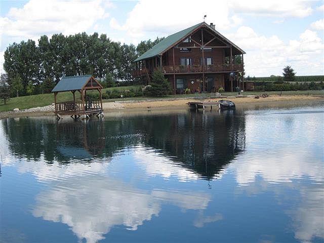 Beautiful Log Cabin sitting on nearly 8 acres overlooking your private pond just 29 miles from Waterloo, Cedar Falls. Home was built in 2004 with 3,478 finished sq. ft., loft, geo thermal heat, fireplace (gas) lifetime seamless steel roof, surrounding sound stereo system, jetted tub and more. Adjoining commercial property also for sale. See property at 3385 230th St Sumner.