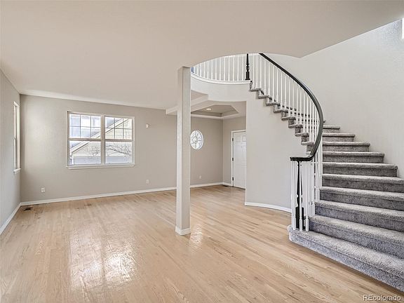Saddle Rock North with its spectacular community pool and golf course. This incredible five bedroom, four bath two-story home with a large driveway and a 3 car garage. This home features a welcoming foyer with high ceilings and circular stair case for a dramatic entry, along with Hardwood floors throughout, and **Fresh Full Interior Paint!**. The kitchen offers an open concept design along with a double oven and spacious island. **New granite countertops, backsplash, and cabinets painted (10/22)**. There’s a main level study and large family room, with **New Carpet and pad (10/22)** . Upstairs includes an expansive owner's suite with a 5 piece bath along with dual sinks adorned with a tray ceiling and large vanity mirror and **New vinyl Flooring (20/22)**. Just steps away a large loft current being used as a spacious private gym. There are two bedrooms that share a full bath Jack & Jill style as well on the upstairs floor. The finished basement offers a generous space for entertaining, games, and an abundance of storage. Including a second family room or possible media room. The 4th & 5th bedrooms are located on this level and is the perfect private space for guests complete with a large updated bathroom. Don't miss the opportunity to own this breathtaking home. Welcome home!