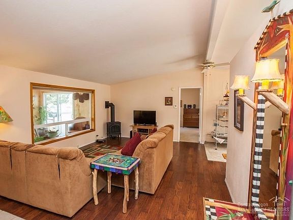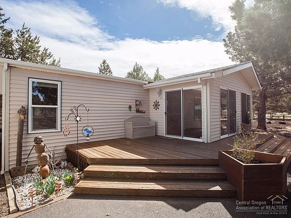 Sunny 3-bedroom, 2-bath home on 9.76 acres offers a beautiful, peaceful setting with easy access to Bend. Lots of improvements, incl sunroom addition, gas fireplace, HVAC system, kitchen countertops, skylight & bamboo flooring, window treatments & more. Low-maintenance property with fenced yard & multiple outdoor entertaining opportunities: extensive decking, fire pit w/natural rock seating, greenhouse & raised beds, spa area with hot tub & sauna. Across the street from BLM land with trail access.